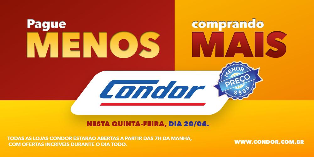 Amanhã, dia 20 de abril, todas as lojas do Condor Super Center abrem às 7h da manhã para a ação “Pague menos comprando mais Condor’, que terá ofertas de diversos packs promocionais, como ‘Leve 3, Pague 2’, ‘Leve 2, Pague 1’, ‘Compre mais por unidade e ganhe descontos’ e muito mais. Além do preço atrativo, […]