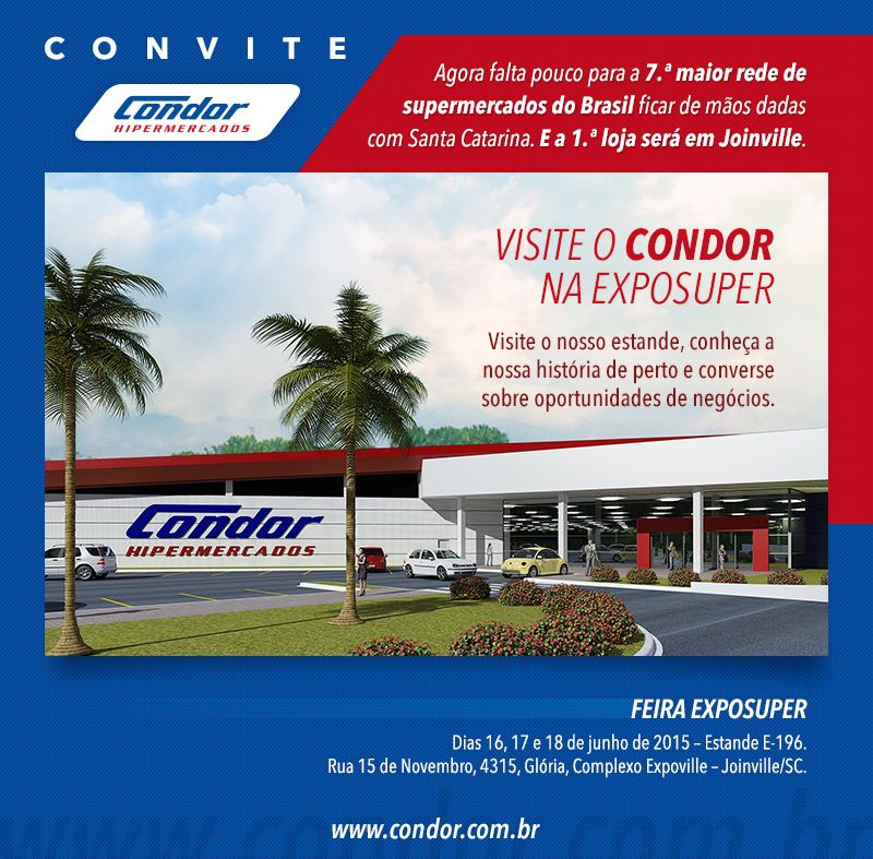 Com as obras da nova loja da rede já iniciadas, o Condor Super Center participa da Feira Exposuper – 28ª Feira de Produtos, Serviços e Equipamentos para Supermercados – com um estande cujo objetivo será o de estreitar o relacionamento com os fornecedores locais e apresentar a estrutura do hipermercado que será inaugurado em Joinville. […]