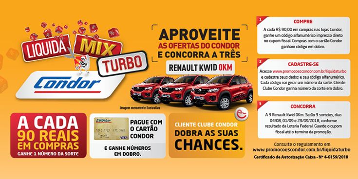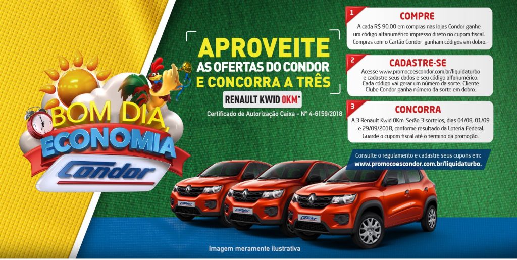 Após o sucesso da primeira edição da promoção Liquida Mix Turbo Condor, a rede ampliou a promoção e vai sortear três Renault Kwid 0 km na segunda edição da campanha, que acontece de 2 de julho a 28 de setembro. A cada R$ 90,00 em compras (exceto bebidas alcoólicas, produtos de tabacaria e cigarros), será […]