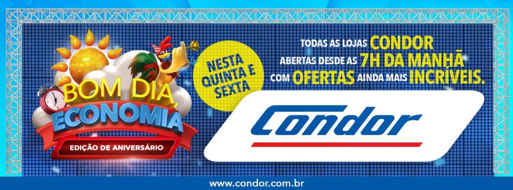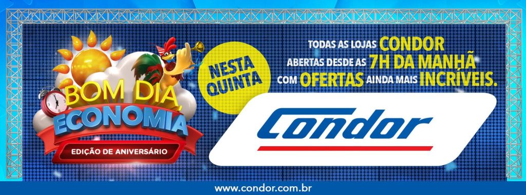 Nesta quinta-feira, dia 26 de outubro, as 44 lojas do Condor Super Center estarão abertas, excepcionalmente, a partir das 7h da manhã para a ação “Bom Dia, Economia”, edição especial de Aniversário, que vai oferecer aos clientes promoções imperdíveis em todos os departamentos. Esta edição do “Bom Dia, Economia” vai contar também com ofertas exclusivas […]