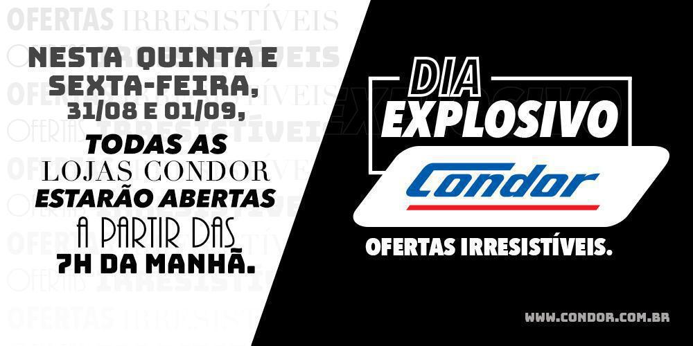 Nos dias 31 de agosto e 1º de setembro, as 43 lojas do Condor Super Center estarão abertas, excepcionalmente, a partir das 7h da manhã para a ação “Dia Explosivo Condor”, que vai oferecer aos clientes promoções imperdíveis em todos os departamentos. Além das ofertas em diversos produtos, a rede ainda oferece um parcelamento diferenciado […]
