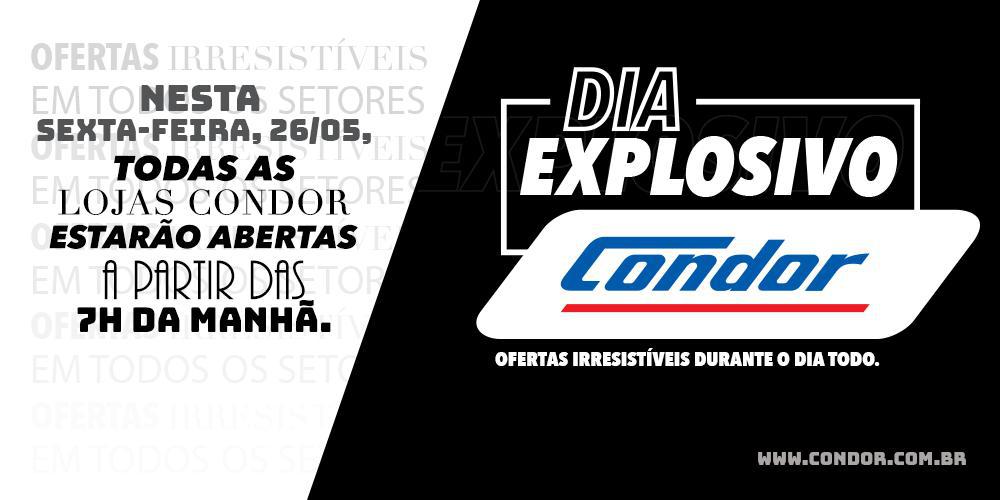 Nesta sexta-feira, dia 26 de maio, acontece o Dia Explosivo Condor, uma ação que vai proporcionar ainda mais economia aos clientes. Com promoções especiais selecionadas em todos os setores, as 43 lojas da rede estarão abertas excepcionalmente a partir das 7h da manhã. A ação é viabilizada graças à parceria entre o Condor e seus […]