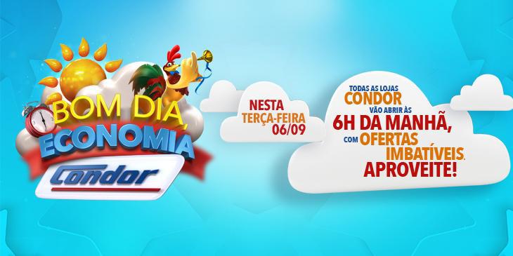 Rede reprisa ação de sucesso e abre às 6h da manhã nesta quinta No início de setembro, a rede Condor de supermercados realizou uma ação inédita, batizada de “Bom Dia Economia”, abrindo suas lojas às 6h da manhã na véspera do feriado, com diversos produtos em promoção. Agora, como parte das comemorações de aniversário dos […]