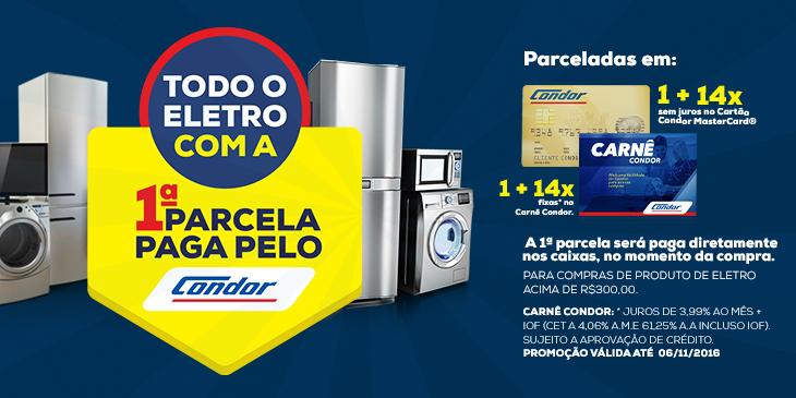 Todo o eletro com a 1ª parcela paga pelo Condor.