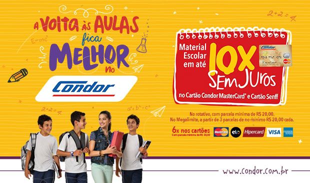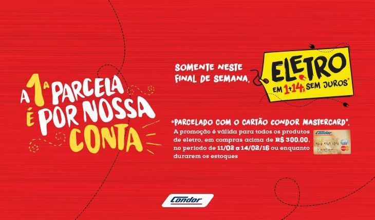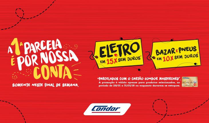 Neste final de semana, o Condor Super Center está com uma promoção especial para os portadores do cartão Condor MasterCard®. A rede irá pagar a primeira parcela dos clientes que comprarem produtos de eletro, selecionados para a promoção, em 15x sem juros e produtos de bazar e pneus, também especialmente selecionados, em 10x sem juros. […]