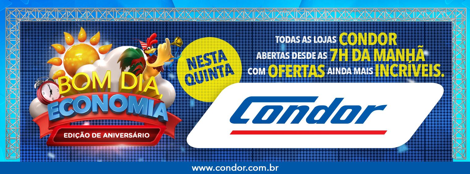 Nesta quinta-feira, dia 26 de outubro, as 44 lojas do Condor Super Center estarão abertas, excepcionalmente, a partir das 7h da manhã para a ação “Bom Dia, Economia”, edição especial de Aniversário, que vai oferecer aos clientes promoções imperdíveis em todos os departamentos. Esta edição do “Bom Dia, Economia” vai contar também com ofertas exclusivas para clientes do Clube Condor, lançado recentemente junto com o início do aniversário da rede.
