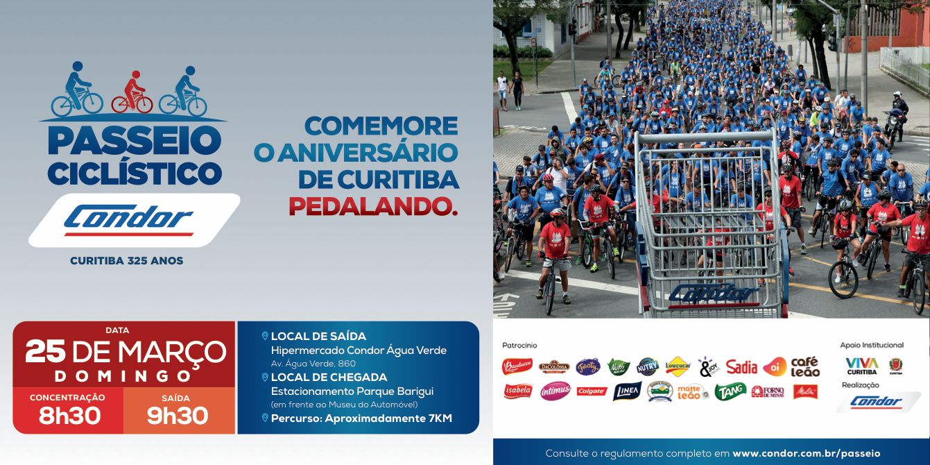 Para a diretora de marketing do Condor, Elaine Munhoz, este passeio surpreendeu todas as expectativas. “Os curitibanos vieram em peso e ficamos muito orgulhosos que a prática de exercícios está mais enraizada entre a população e que o passeio ciclístico se consolidou no calendário de comemorações do aniversário da cidade”.
